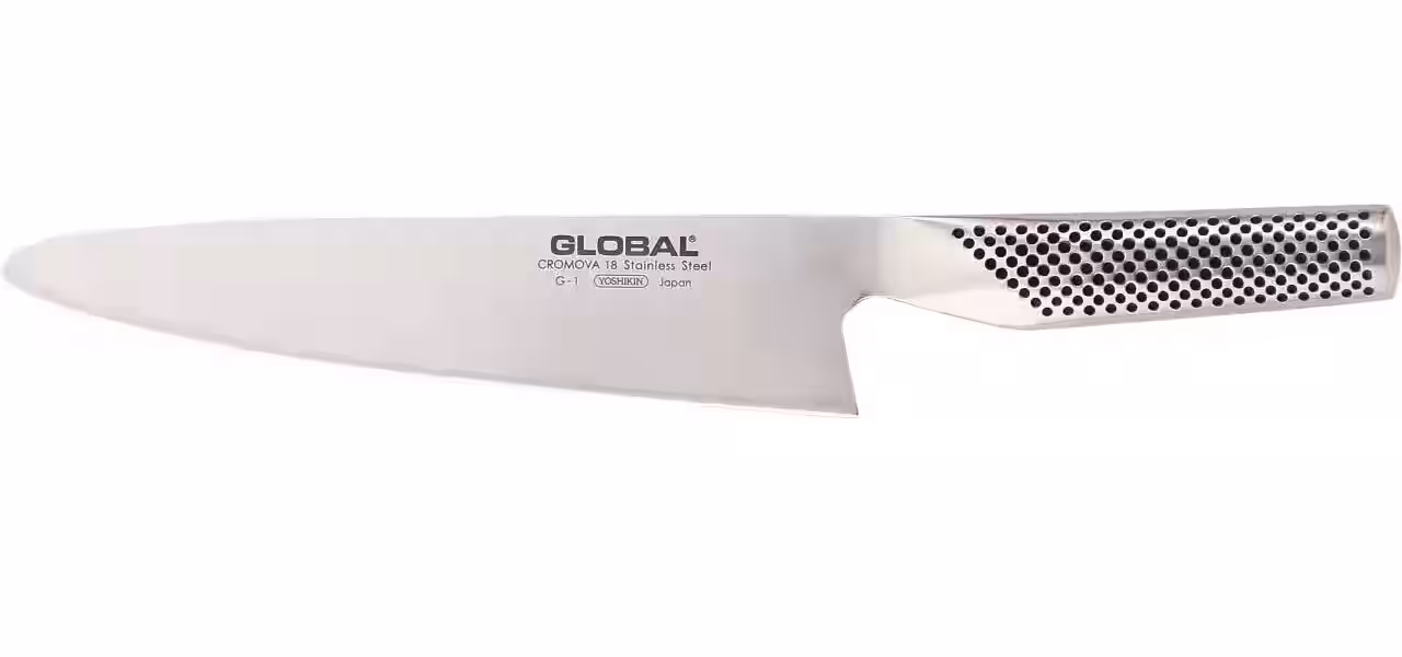 Großes Global Kochmesser Klingenlänge 21 cm aus der klassischen G-Serie mit Japan Schliff.