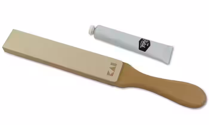 Streichriemen Set von Kai zur abrundenden Pflege von hochwertigen Koch- und Küchenmessern nach dem Schleifen.