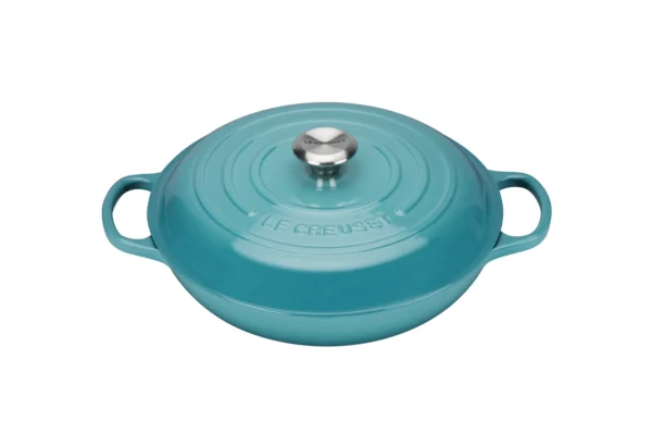 Der Gourmet Profitopf von Le Creuset ist durch seine praktische Form besonders vielseitig. Er ist gleichzeitig ein Gusseisen Schmortopf und Pfanne sowie ein flacher Bräter.