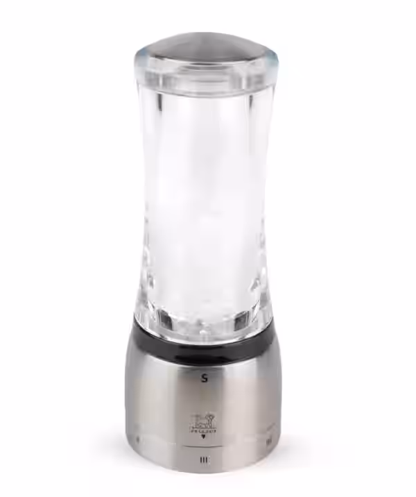 Die Peugeot Daman Salzmühle ist aus transparentem Acryl und gebürstetem Edelstahl.