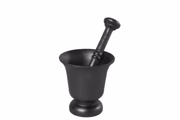 Gusseisen Mörser und Stößel von Skeppshult aus naturbelassenem Gusseisen. Das Gusseisen ist durch seine raue Oberfläche, Gewicht und die Materialeigenschaften ideal für Küchen Mörser.