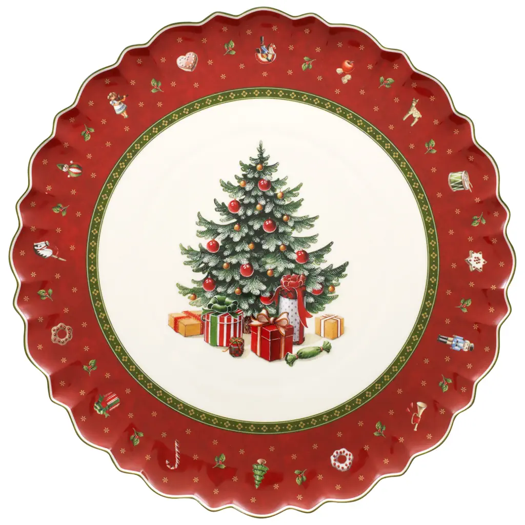 Weihnachtliche, runde Kuchenplatte aus der Serie Toys Delight von Villeroy & Boch.