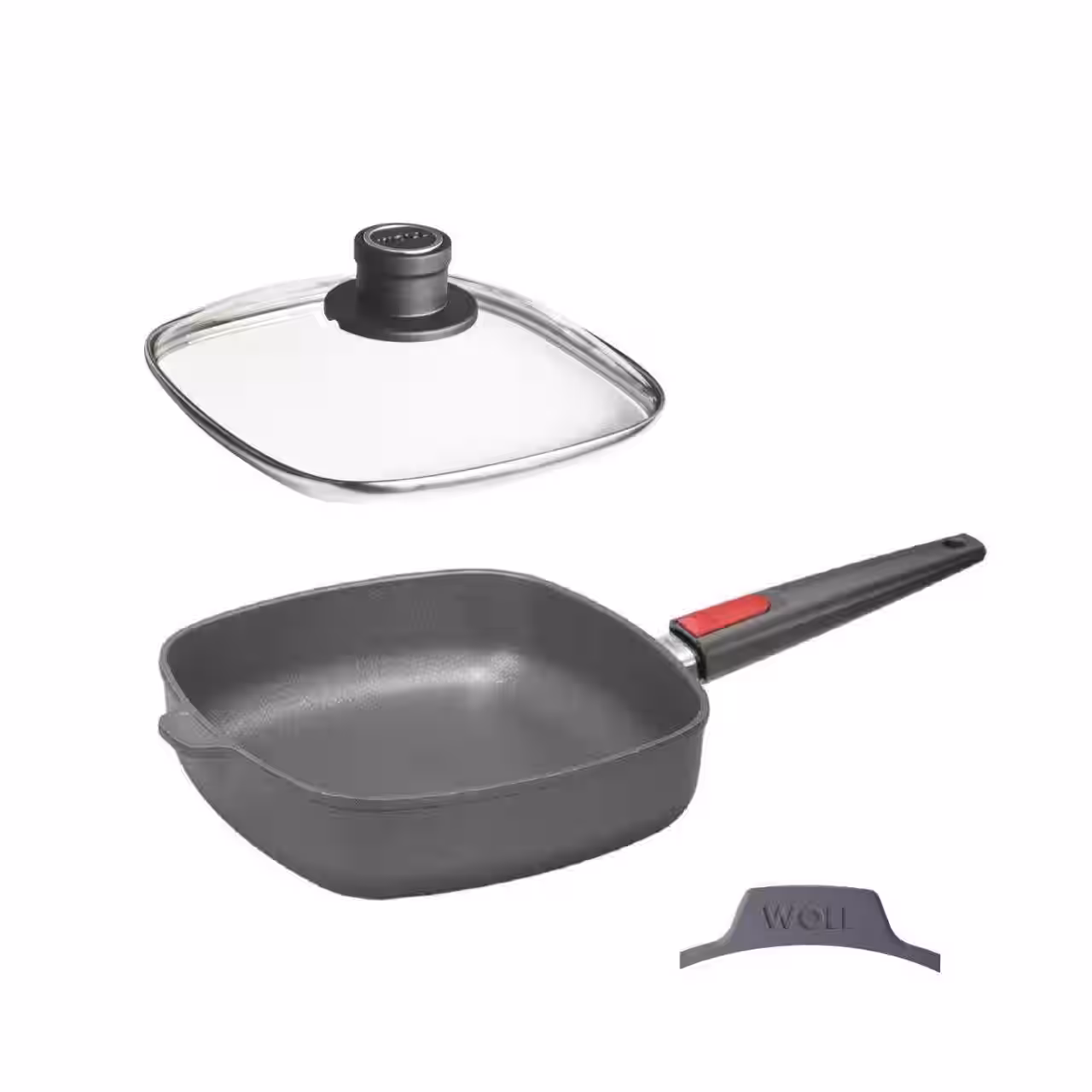 Robuste, geräumige Woll Viereckpfanne beschichtet aus hochwertigem Aluguss als günstiges Setangebot.